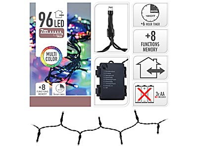 ŁAŃCUCH LED 96 WIELOKOLOROWE 7M 8 FUNKCJI ŚWIECENIA,TIMER NA BATERIE WW ZEWNĘTRZNE