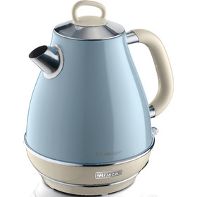 Vintage rychlovarná konvice Celokovová s chromovanými detaily Plastová rukojeť, která je jemná na dotyk Příkon 2000W Objem 1,7l Otočná základna o 360° Skryté topné těleso Indikátor úrovně vody v konvici Vnitřní odnímatelný odvápňovací filtr