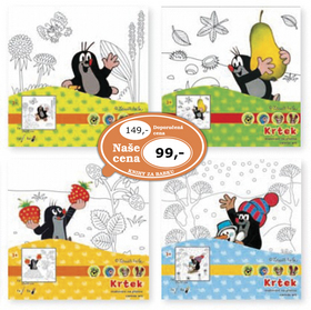 Sada s oblíbenou postavičkou Krtka pro kreativní děti a začínající umělce.Plátno, které je připevněno k dřevěnému rámu obsahuje černobílou perokresbu k vybarvení.