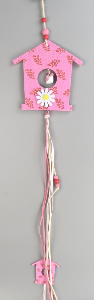 Závěsná dekorace domeček z flízu, barva růžová. číst celé