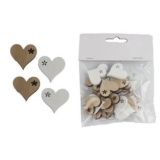 Sada dekoračních srdíček.Sada obsahuje 24 srdíček.Rozměry : 2,5 x 2,5 cm, tloušťka 0,3 cm.Barva : kombinace přírodní, bílá.Materiál na bázi dřeva. číst celé