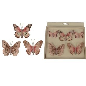 Sada dekoračních motýlků s klipem.Sada obsahuje 5 motýlků o dvou velikostech.Menší motýlci mají šířku 4,5 cm, tloušťku 1 cm, výšku 3,8 cm.Větší motýlci mají šířku 7,5 cm, tloušťku 1 cm, výšku 6,5 cm.Materiál : textil, klip - kov. číst celé