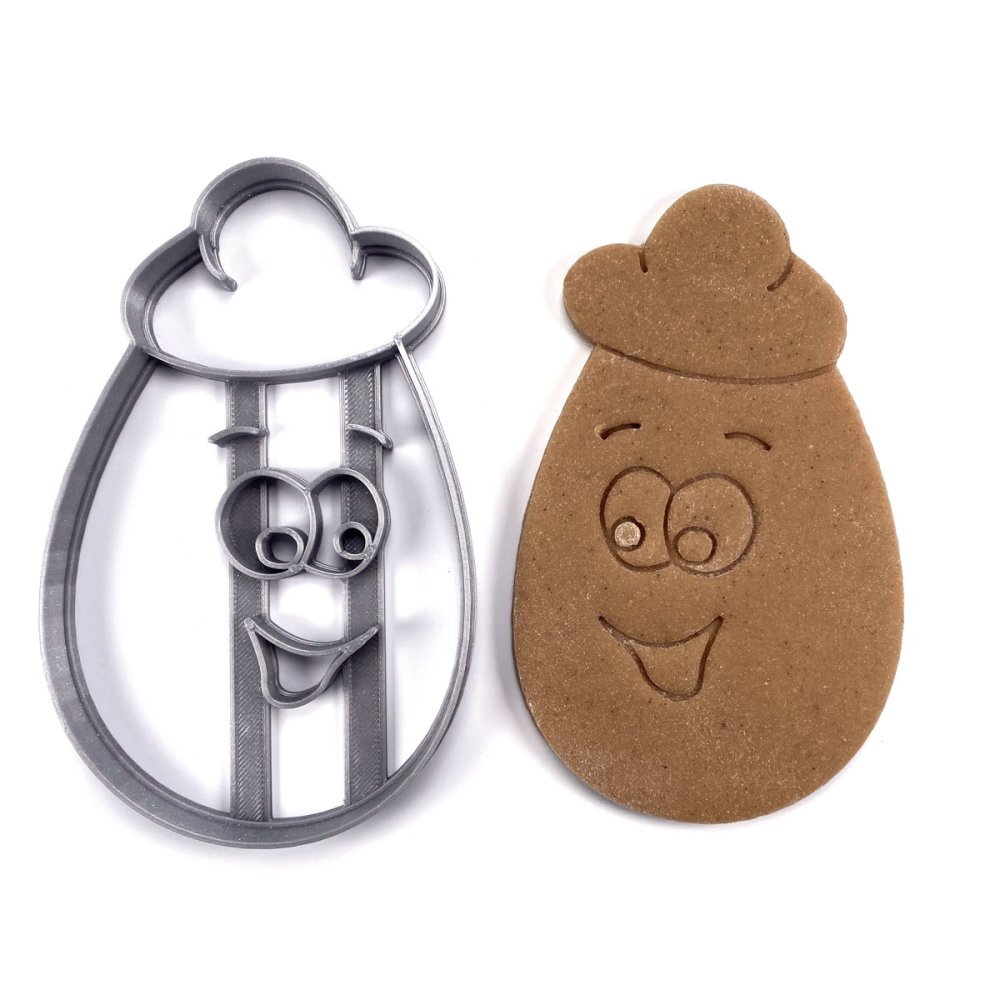 Vykrajovátko s velikonočním motivem vejce s kloboukem je zhotoveno na 3D tiskárně, z materiálu PLA plast (materiál biologicky odbouratelný), odolný do 50°C, nevhodný do myčky na nádobí. Pomocí středu se do hmoty otisknou linie, pomocí kterých se snadno zdobí. Vhodné pro hmoty jako je těsto...