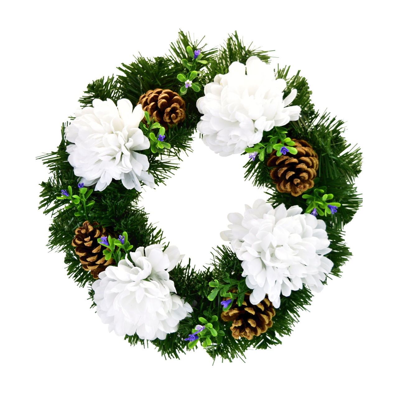 Dušičkový věnec s bílými chryzantémami Ø30 cm