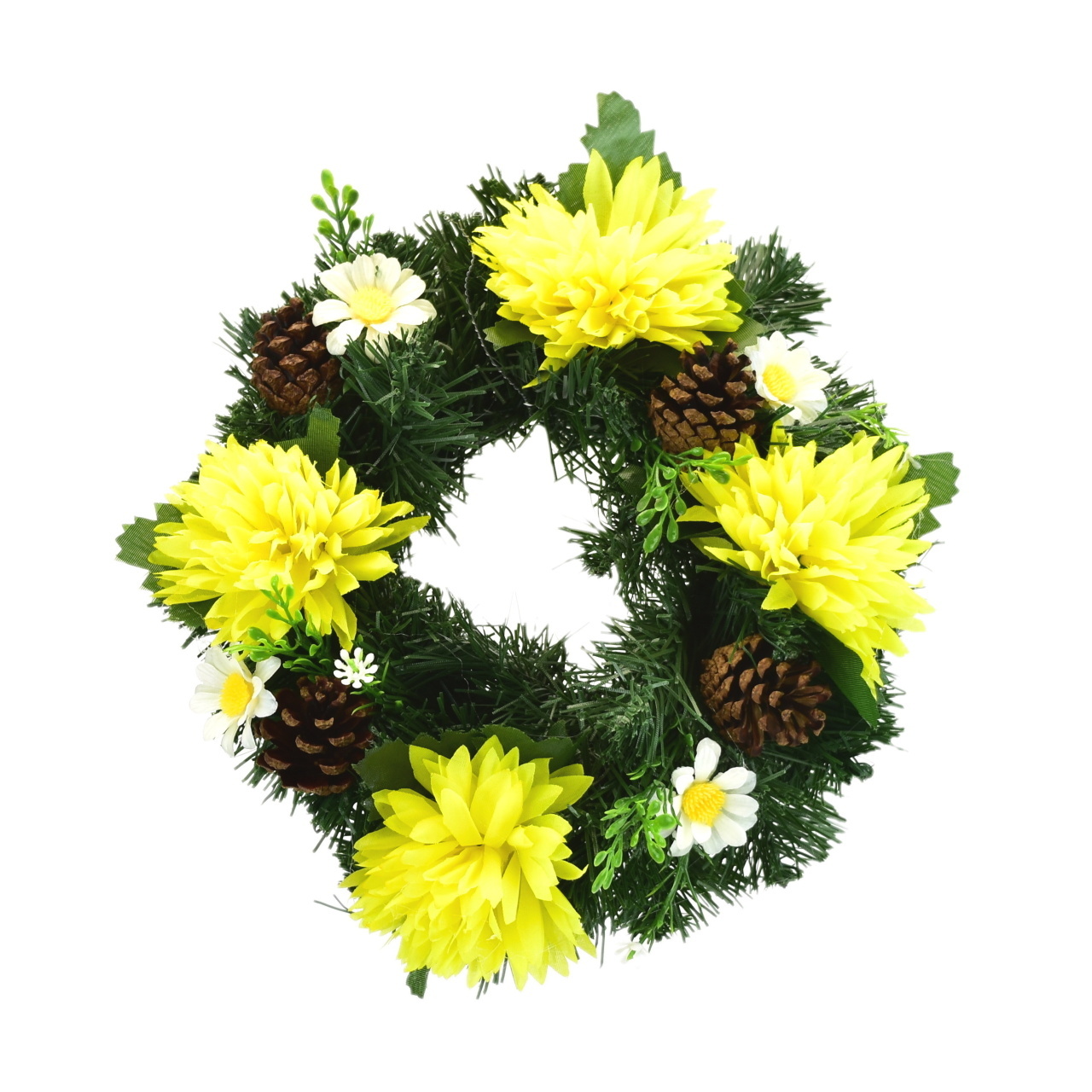 Dušičkový věneček se žlutými chryzantémami Ø20 cm
