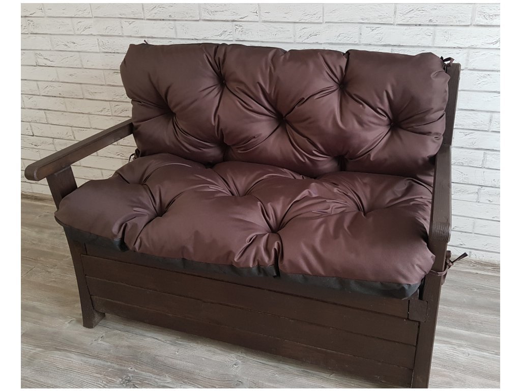 Prošívané sezení JONAS, polstr na zahradní lavici - sedák s opěrkou, HNĚDÁ, 150x60x50 cm, Mybesthome