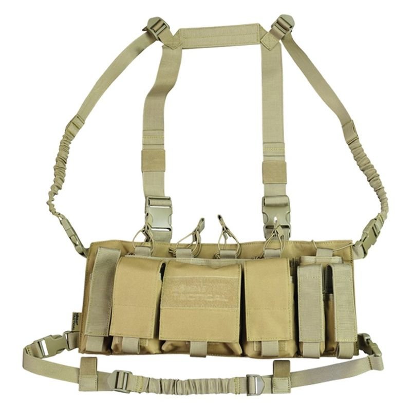 Kompaktní chest rig umožňující nést 4 zásobníky pro AR15, 2 pistolové zásobníky, radiostanici a další drobné vybavení. Odpružené, délkově nastavitelné nosné popruhy. číst celé