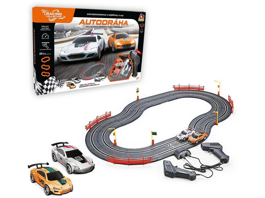 Tato autodráha z řady Racing Collection obsahuje dvě závodní auta speciály a dva ovladače, takže můžete soutěžit s kamarádem nebo členem rodiny. Díky USB kabelu pro externí napájení je provoz snadný a pohodlný (napájecí zdroj není součástí balení). Délka trati 240 cm nabízí dostatek prostoru pro svižné a vzrušující závody.