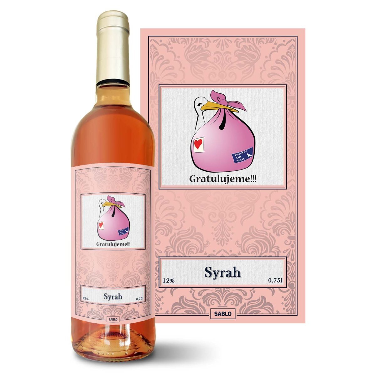 Růžové víno Gratulujeme!!!: 0,75 l