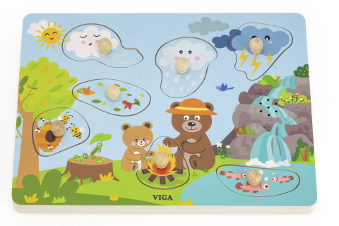 Tato vkládačka nabízí barevné dřevěné dílky zvířátek a hudebních nástrojů, které po vložení do správného otvoru aktivují autentický zvuk daného obrázku. Díky tomu děti nejen rozvíjejí koordinaci ruky a oka, ale také poznávají zvuky zvířat a hudebních nástrojů, což podporuje jejich sluchové vnímání a zvídavost.