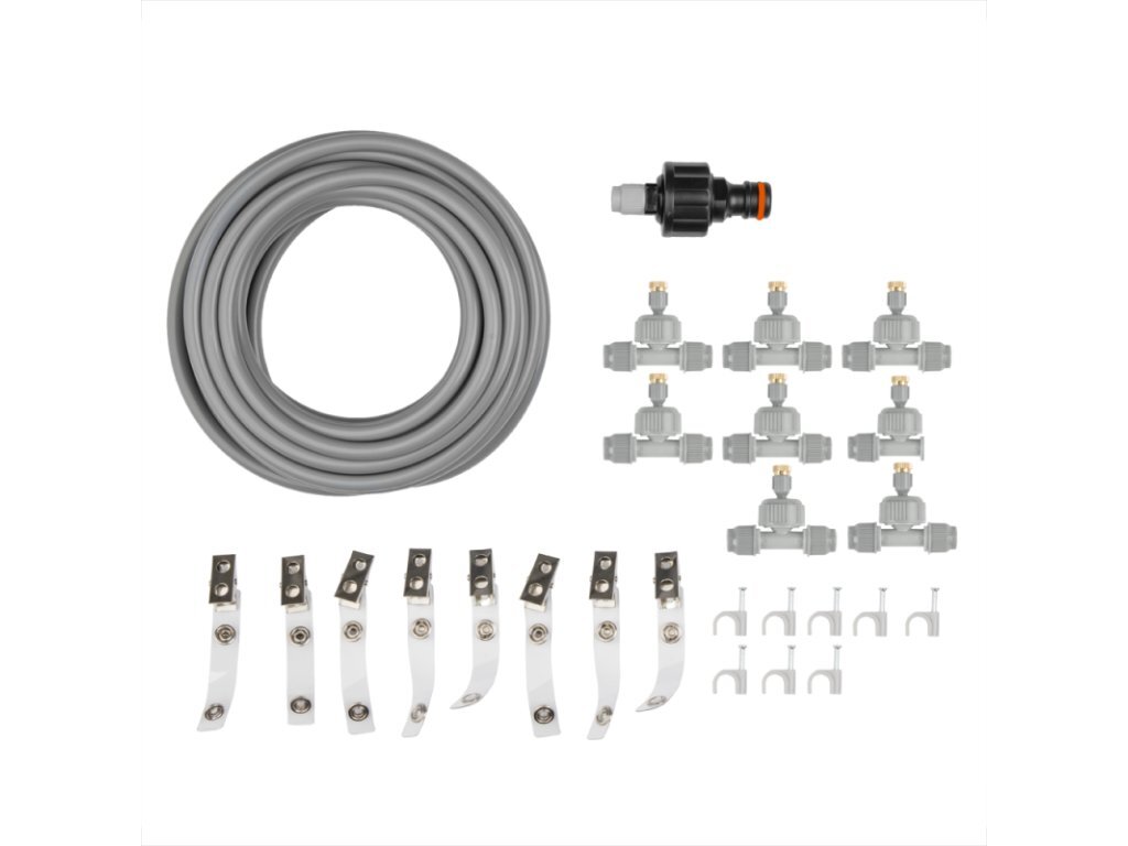 Zahradní vodní mlha 12m WHITE LINEZahradní vodní mlha, která vás příjemně ochladí na terase vašeho domu, restaurace či kavárny, nebo na vaší zahradě. Díky systému pěti nerezových nastavitelných trysek ochladíte vzduch v parném létě o 10°C až 12°C. Připojení je možné přímo na zahradní hadici....