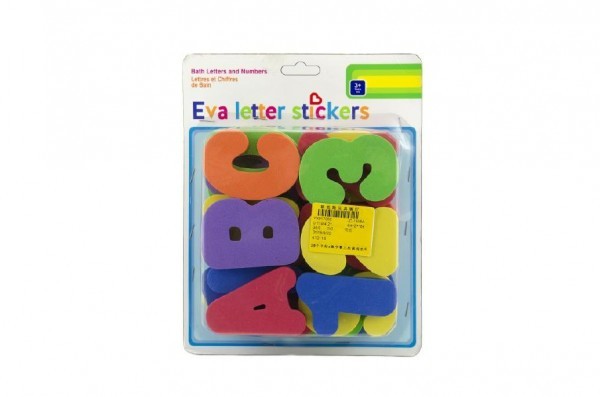Pěnová písmena a číslice vodolepky 8cm na kartě