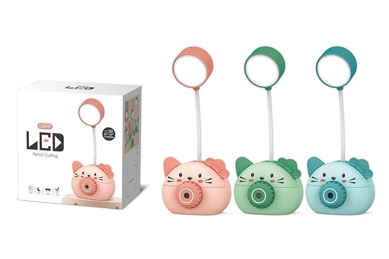 Lampka z temperówką.2 tryby światła led główne i boczne, elastyczne ramię, w podstawie organizer na ołówki, wbudowana temperówkaW zestawie:lampka,przewód USB do ładowania. číst celé