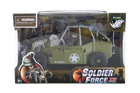 Plastová sada obsahuje džíp, vojáka a další zbraně a náčíní. Rozměry džípu cca 23 x 14 cm. Rozměry balení cca 28 x 18 x 11,5 cm. Věk 3+ číst celé