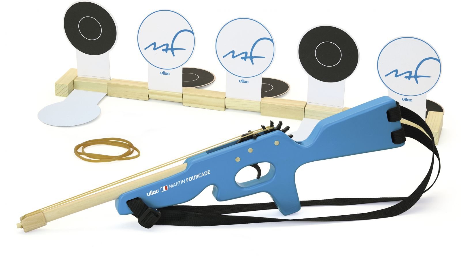 Vyrobená renomovanou francouzskou firmou Vilac, která má již více než stoletou tradici ve výrobě ekologických a kvalitních dřevěných hraček, tato malorážka nabízí bezpečné a dlouhodobé využití. Barevná pažba s francouzskou vlajkou a podpisy Martina Fourcada a Vilacu dodávají hračce autentický vzhled a originální hodnotu.