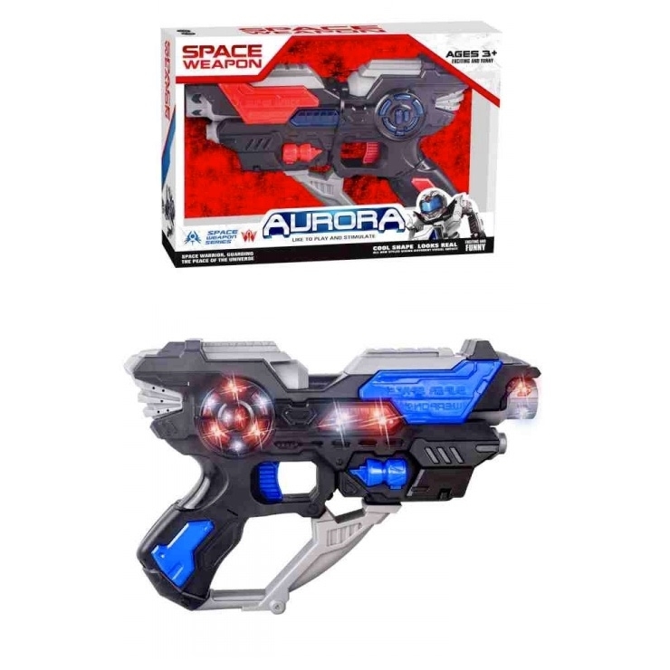 Vesmírná pistole Aurora se zvukem a světlem. Po stisknutí spouště, začne pistole vydávat reálné zvuky a svítit. Hračka vyžaduje 3ks 1,5V baterií typu AA, které nejsou součástí balení. Možnost výběru ze dvou variant: s rukojetí nebo bez a ze dvou barev: červená nebo modrá. Nevhodné pro děti do 3... číst celé