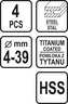 Sada stupňovitých vrtáků 4ks 4-39 mm
