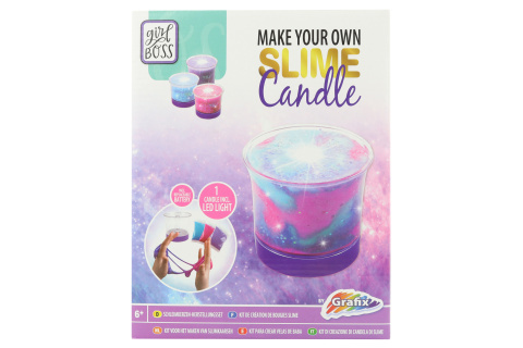 Sada na výrobu svíčky ze slizu. Balení obsahuje sliz, barevné písky, třpytky a plastový kelímek na svíčku s LED světlem. Napájení na 1 CR2032 baterie (je součástí balení). Rozměry balení cca 19 x 24 x 6,5 cm. Věk 6+ číst celé