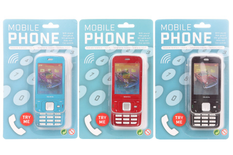Mobilní telefon se zvuky. Telefon vydává standartní zvuky a má měnící displej. Napájení na 2 AG13 baterie (jsou součástí). Rozměry telefonu cca 5,5 x 13 cm. Rozměry balení cca 13,5 x 22 x 2 cm. Věk 3+ číst celé