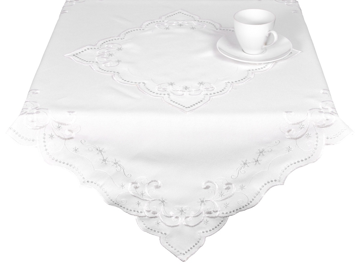 Elegantní dekorační ubrus pro Vánoční pohodu a krásně prostřený stůl je vyrobenz příjemné látky vysoké gramáže. Nádherný lehce lesklý a přímo královský vzor stříbrných sněhových vloček se stříbrným perlovým řetízkem a decentním bílým ornamentempůsobí svátečně na prostřené vánoční tabuli.Příjemný...