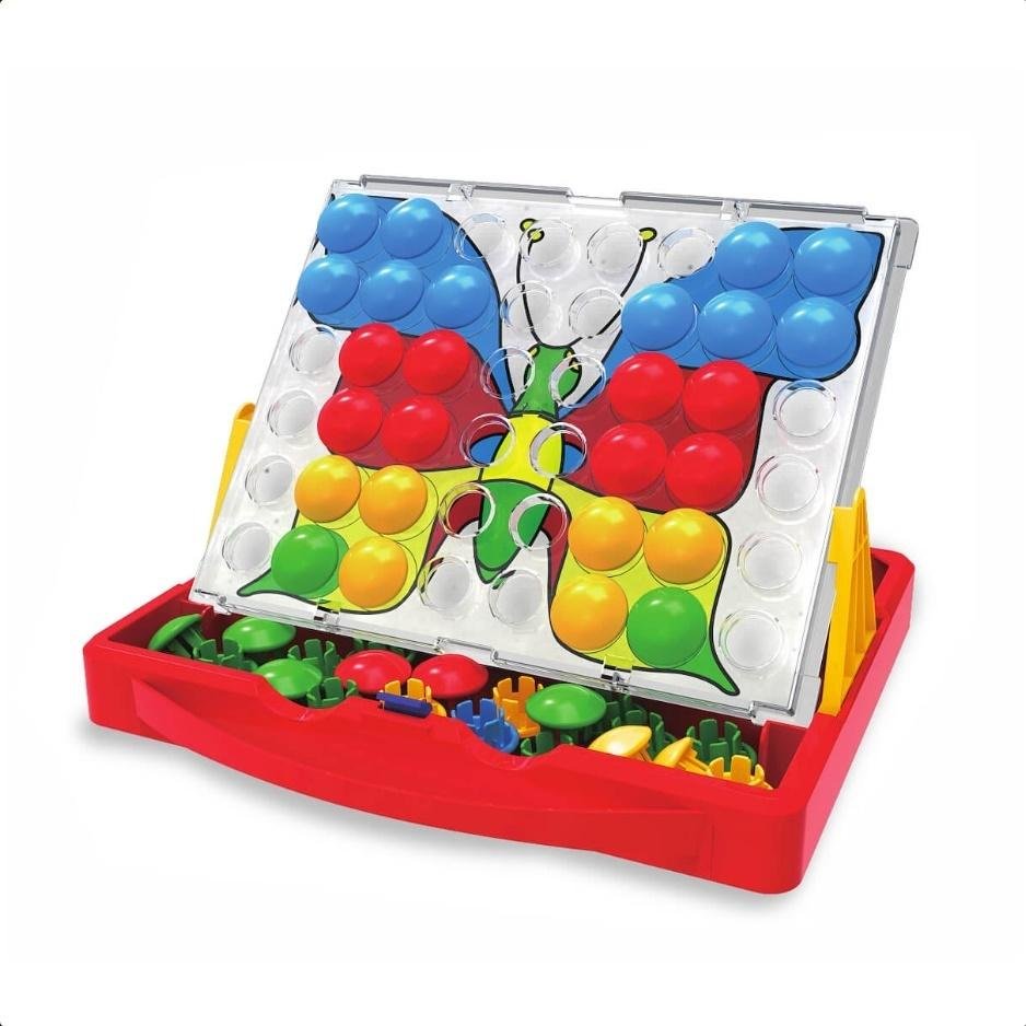 MOZAIKAW pudełku znajduje się:walizka do przechowywaniapodstawka16 obrazków do układania48 dużych, kolorowych elementów o średnicy 3 cm.Zabawę zacznij od ściągnięcia przeźroczystej folii i wyciągnięcia kolorowych okrągłych wzorów. Wybierz kartę, zamieść ją na nakładce i zacznij zabawę...