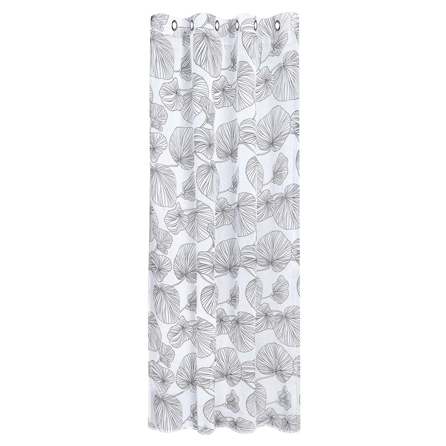 Záclona s kroužky, potisk „listy“ - černá, 245 mm, 145 mm