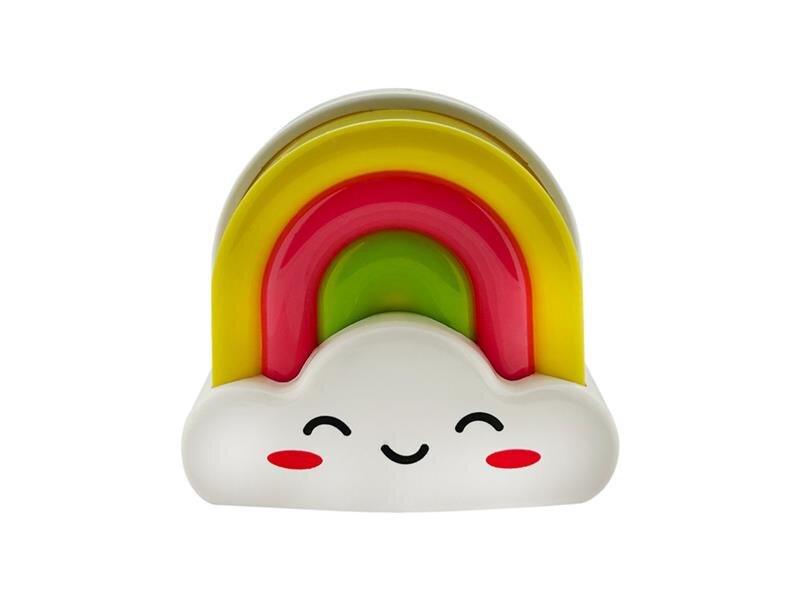 Barvy žluté, růžové a zelené duhy oživotvorně spolu s bílým podkladem vytváří příjemnou a hravou atmosféru, která děti motivuje k pohodlnému usínání. Kompaktní rozměry a nízká hmotnost 45 gramů zaručují, že světlo nezabere místo a snadno se přenáší či umisťuje. Výrobek je vyroben z odolného materiálu PP, který zajistí dlouhou životnost.