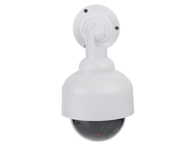 Tato atrapa venkovní kamery je navržena tak, aby svým provedením věrohodně imitovala průmyslovou Speed DOME kameru. Její robustní design umožňuje snadnou montáž jak v interiéru, tak i v exteriéru. Díky nízkým požadavkům na napájení (2x AA baterie, nejsou součástí) můžete kameru umístit téměř kamkoliv, kde potřebujete působit odstrašujícím dojmem skutečného bezpečnostního zařízení.