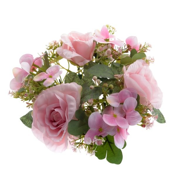Umělý věnec - růže a hortenzie, světle růžová, 24/120