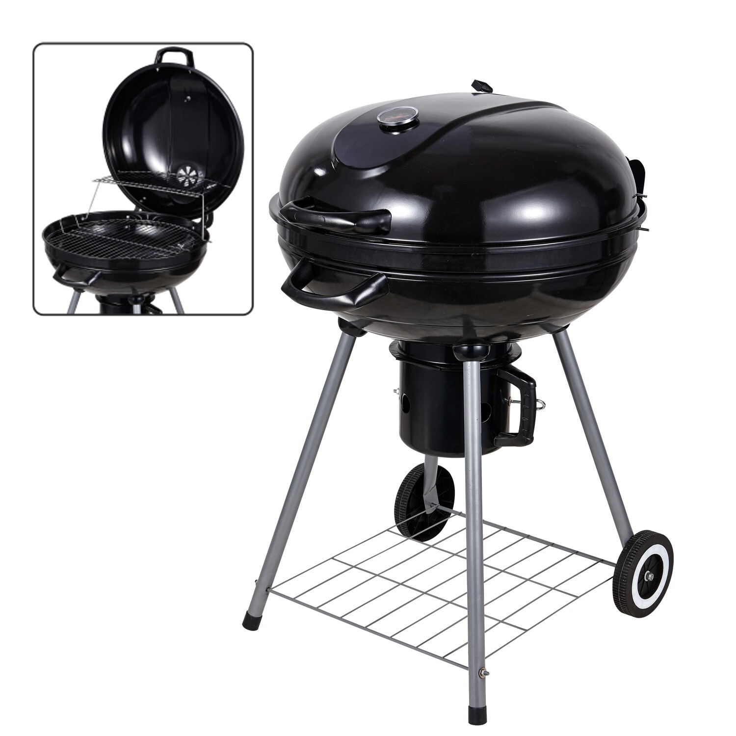 Materiál grilovací plochy: KovPrůměr grilovací plochy: 55 cmŠířka grilovací plochy: 55 cmTyp: ZahradníVýbava: Vyjímatelný rošt, Teploměr, Pojízdný vozíkHloubka: 57 cmŠířka: 66 cmVýška: 85 cm číst celé