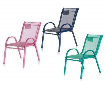 Dětská zahradní židle stohovatelná je vyrobená z oceli a textilenu. Rozměr 51 x 36 x 57 / 26 cm. Židle jou stohovatelné, při skladování zaberou minimum místa. Židle je dodávána barvách: modrá, zelená a růžová. Nosnost židle je 35 kg. číst celé