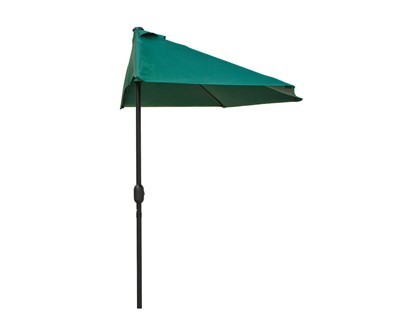 Půlkruhový slunečník 270 x 135 cm s kličkou je ideální řešením pro balkóny či terasy, kde není možné umístění klasického slunečníku. Materiál: kov, potahová látka - polyester, průměr tyče 3,8 cm. Barva tmavě zelená. číst celé