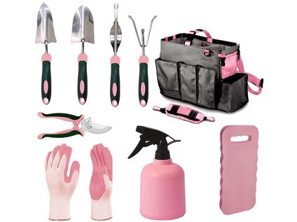 Tato 9dílná sada obsahuje vše, co potřebujete k přesazování, zastřihávání i úpravám záhonků. Růžové a růžovo-černé barevné provedení přidává šarm a jedinečnost, díky čemuž se vaše zahradničení stane ještě příjemnější činností.