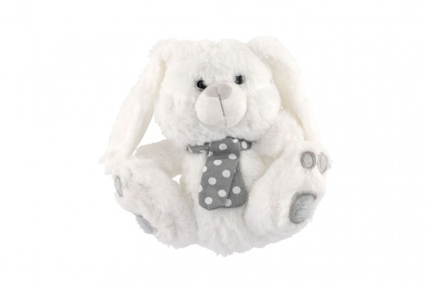 Zajíc/Zajíček sedící se šátkem plyš 20cm bílý v sáčku 0+