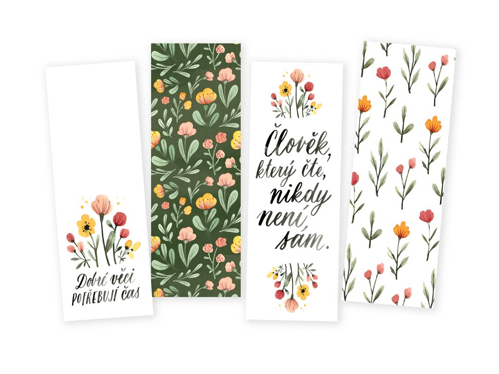 Sada 4 ks oboustranných záložekTištěno na 100% recyklovaný papírRozměr: 52 x 148 mm číst celé
