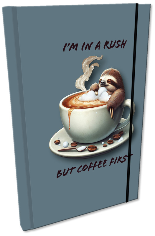 Notes A5 z gumką Soft Touch w kratkę Leniwiec Kawa, Bee-Bee