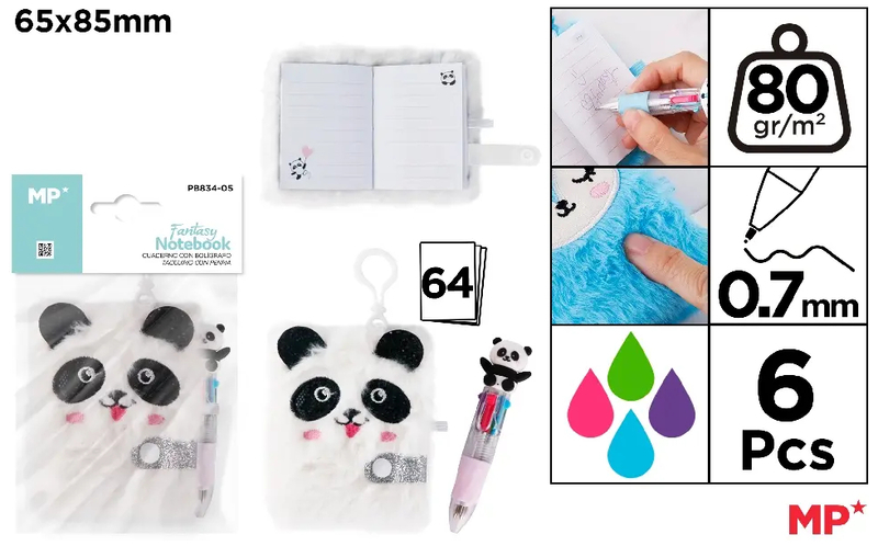 Notes pluszowy z kolorowym długopisem mini 4w1 0,7mm, Panda, Main Paper