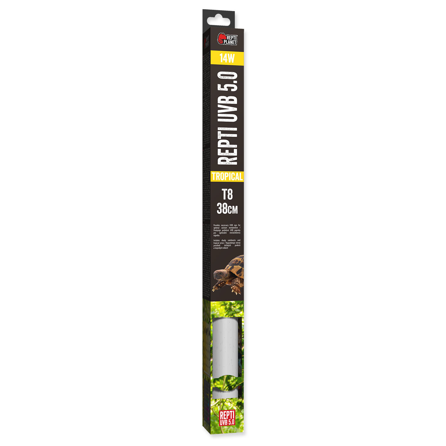 Efektivní až do 30 cm (minimální doporučená vzdálenost od zdroje je 10 cm).Poskytuje potřebné UVB paprsky pro optimální metabolismus vápníku.Obsahuje UVA záření, které podporuje aktivitu, chuť k jídlu a reprodukční chování. REPTI PLANET UVB 5.0 nevyzařují dostatek tepelného a světelného záření....