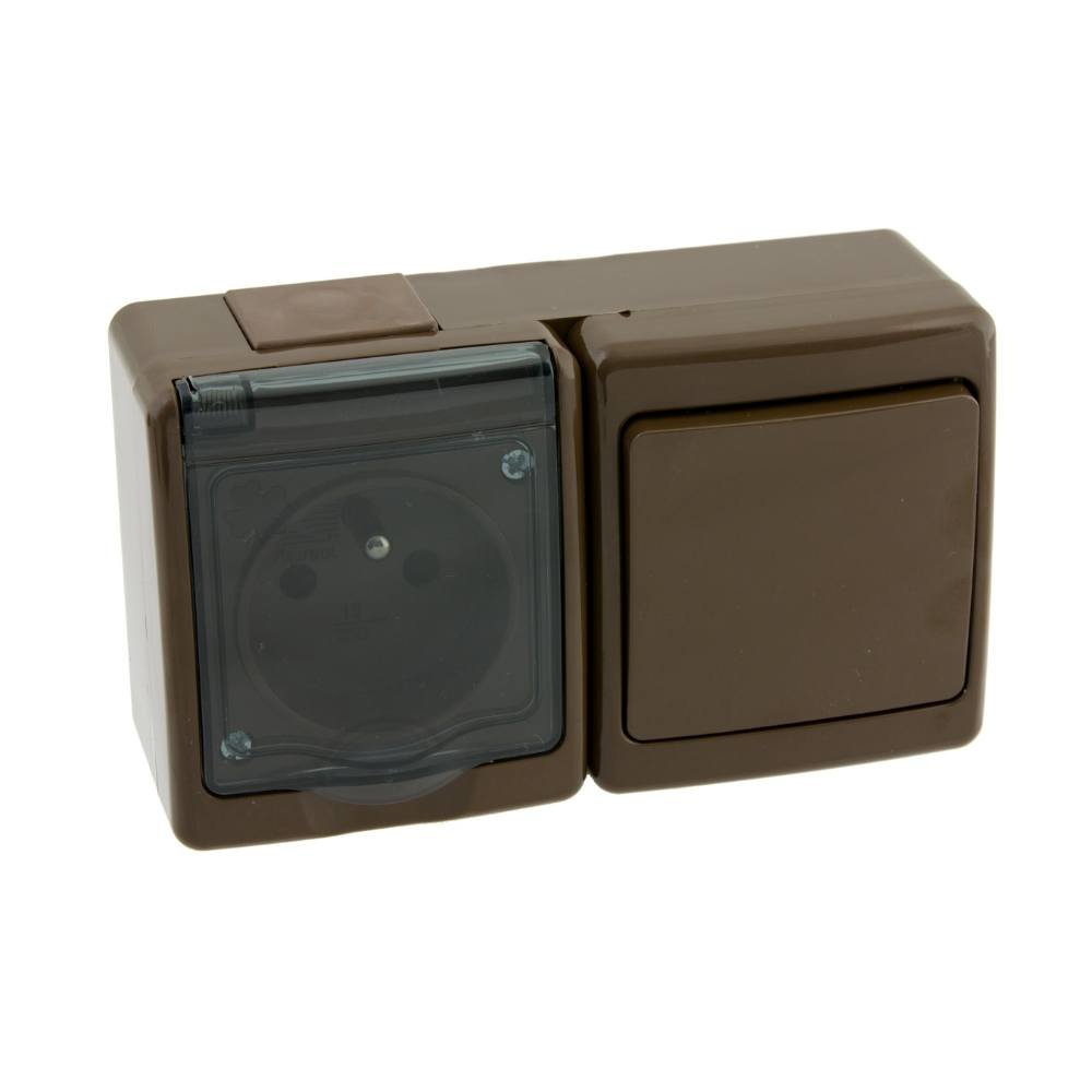 Tento jednopólový vypínač v neutrální hnědé barvě je kombinován s hnědou zásuvkou a šedým ochranným víčkem, které chrání před prachem a vodou. S napětím 250 V a proudem 10 A u vypínače a 16 A u zásuvky splňuje vysoké bezpečnostní standardy. Instalace na omítku je snadná a rychlá, což zajišťuje pohodlné připojení spotřebičů a jednoduché ovládání osvětlení či jiných elektrických zařízení.