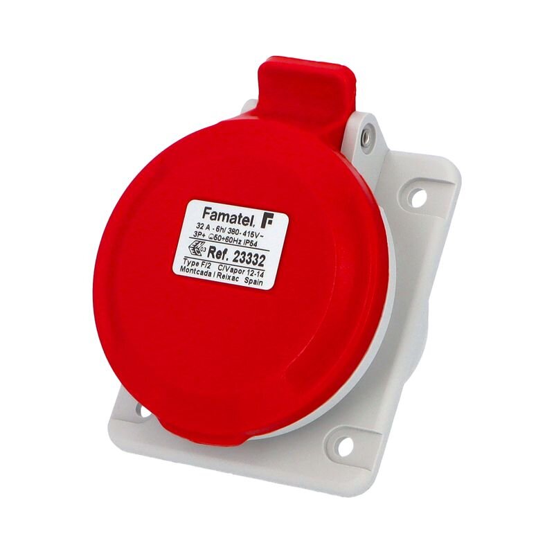 Zásuvka vestavná 23332 IP54/400V/32A/4P 6h, šikmá 10°.Průmyslové vidlice, zásuvky a spojky SpeedPRO splňující požadavky norem IEC 60309.Široký sortiment zásuvek a vidlic od 16 A do 125 A byl navržen a vyroben podle nejnáročnějších norem kvality a vyhovuje i těm nejvyšším požadavkům na...