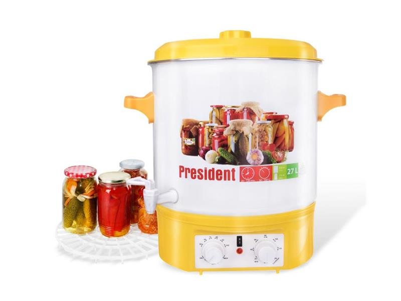 Univerzální zavařovací hrnec - objem 27 l, hygienický smaltovaný - snadno čistitelný. Pro zavařování např. 11 sklenic 0,75 l nebo 34 sklenic 0,37 l. Plynule nastavitelný termostat od 50 - 100 °C, plynule nastavitelný časovač od 20 - 120 minut. Plastové víko, skrytý topný článek, vestavěný...
