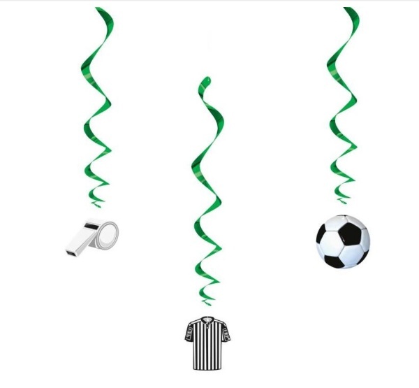 Tato sada závěsných spirálových dekorací s motivy fotbalového míče, dresu a píšťalky se skvěle hodí pro tematickou výzdobu oslavy malého i velkého fanouška fotbalu. Dekorace mají 3D efekt a při zavěšení se volně otáčí, takže oživí každý prostor – ať už jde o dětský pokoj, obývák nebo zahradu....