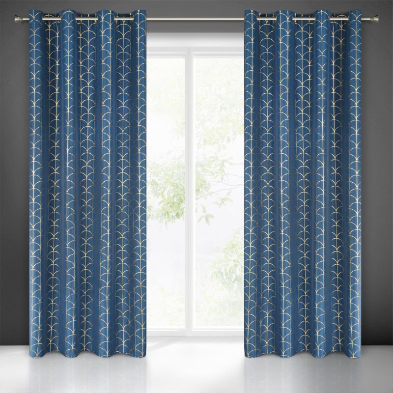 Dekorační vzorovaný závěs s kruhy CANDY modrá/zlatá, (1 kus) 140x250 cm MyBestHome
