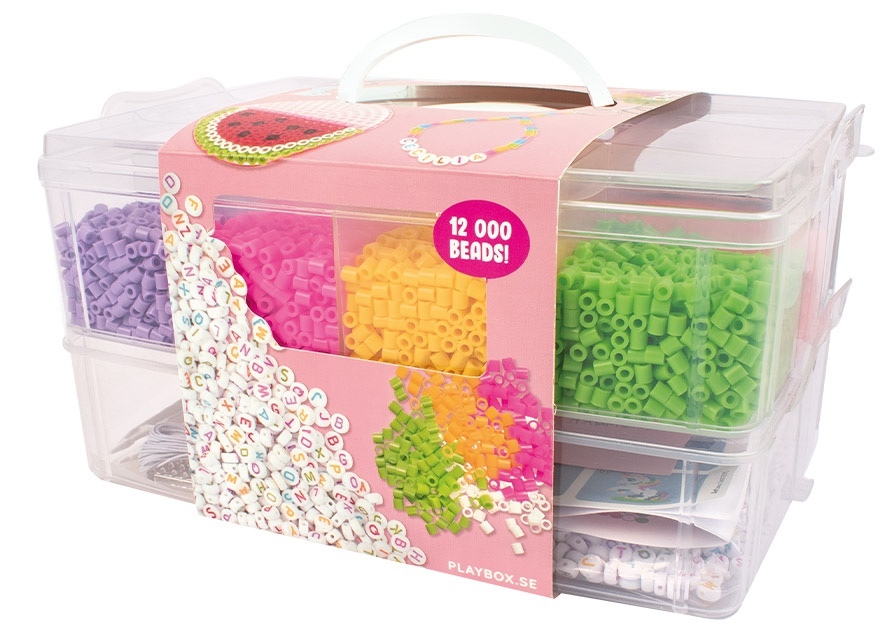 Sada zažehlovacích korálků a korálků s písmeny v organizéru – barevné korálky 5 mm, podložky a doplňky