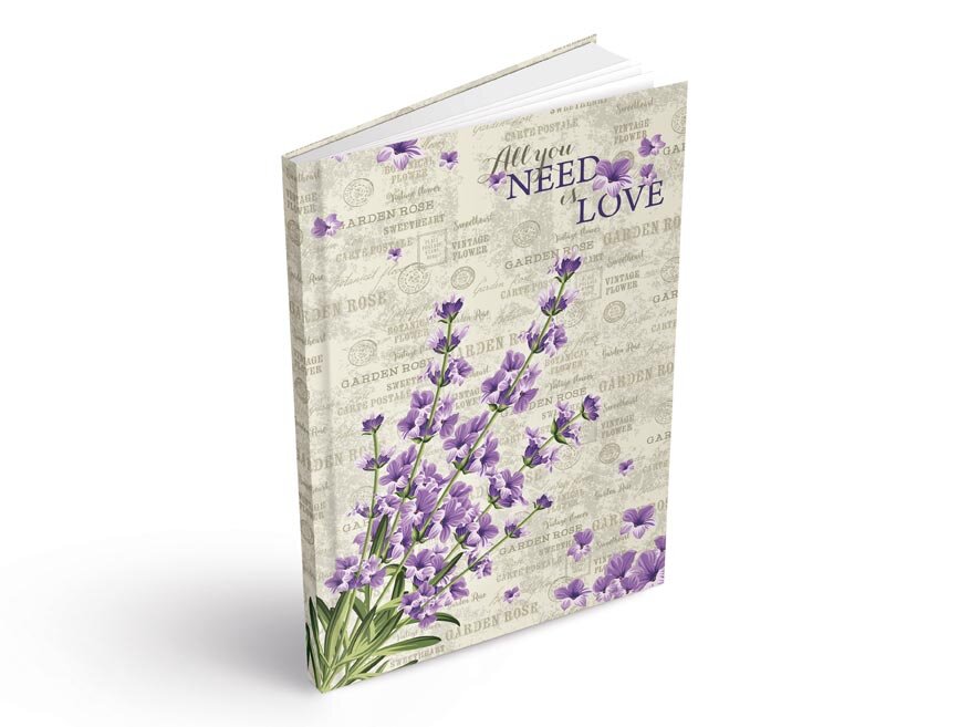 Záznamová kniha nabízí 100 čistých, nelinkovaných listů, díky kterým máte volnost psaní i kreslení bez omezení. Pevné desky z kvalitního lepeného kartonu s laminovaným povrchem chrání vaše zápisky před poškozením a dodávají knize elegantní vzhled. Na titulní straně najdete jemný motiv levandule doplněný inspirujícím nápisem All You Need Is Love, který navíc zkrášluje celkové provedení notebooku.