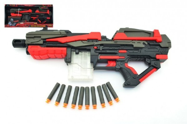 Pistole puška na pěnové náboje 10ks plast 54cm na baterie v krabici
