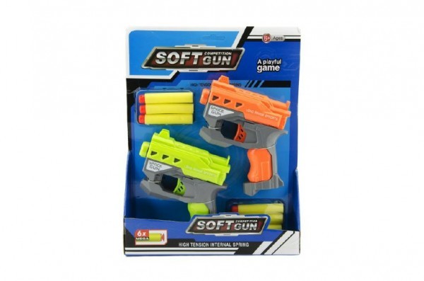 Pistole 2ks 12cm plast na pěnové náboje + 6ks nabojů na kartě