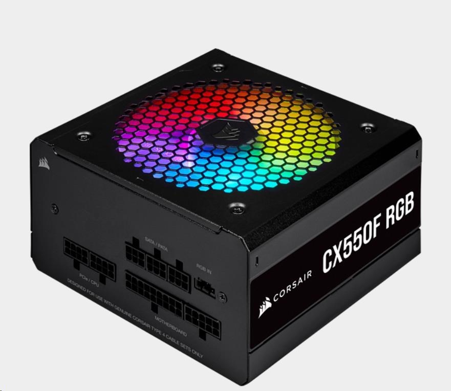 CX Series™ CX550F RGB — 550 Watt 80 Plus Bronze Certified Fully Modular RGB PSUCORSAIR CX-550F RGB Series fully modular power supplies deliver reliable 80 PLUS Bronze efficient power to your system, alongside vibrant customizable lighting from a 120mm RGB fan and a clean aesthetic.TECHNICAL... číst celé
