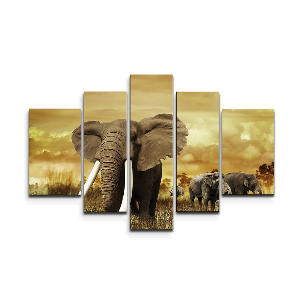 Obraz - 5-dílný Slon Africký: 125x90 cm