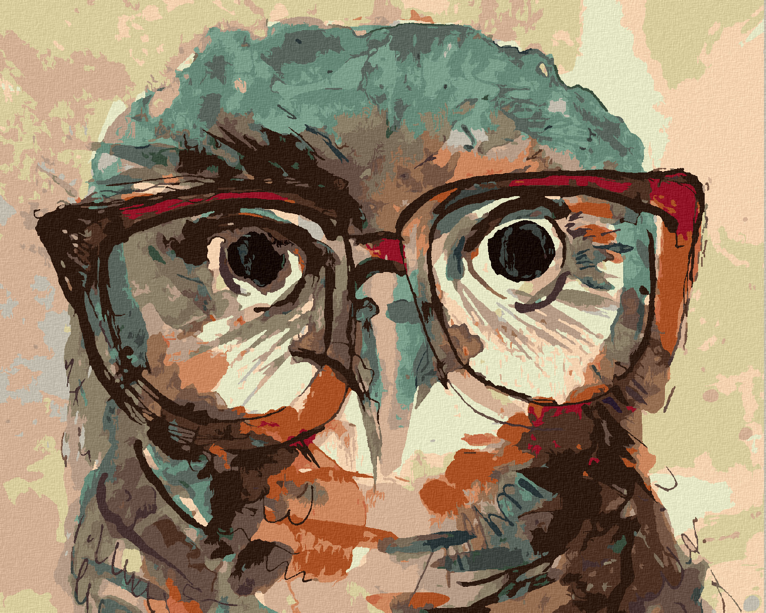 Malování podle čísel - SOVA S BRÝLEMI - 40x50 cm, bez rámu a bez vypnutí plátna